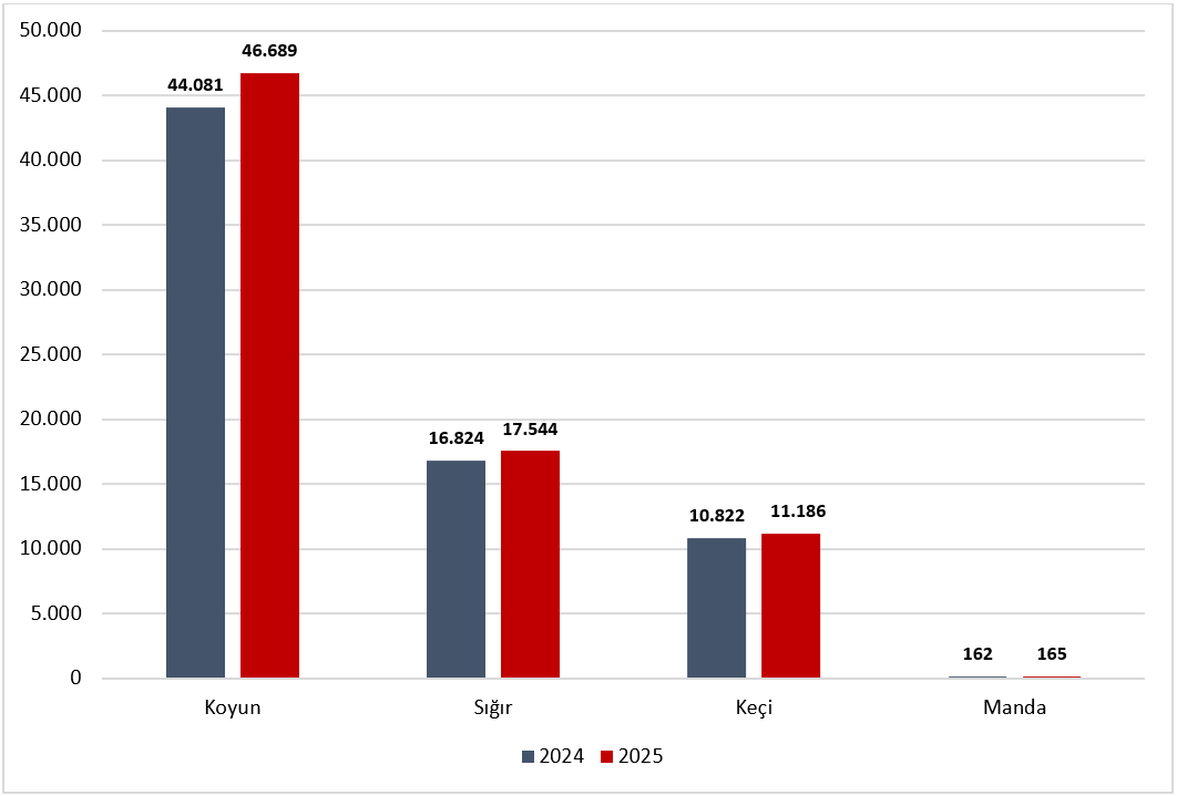 Canlı hayvan sayılarına ait verilerin referans tarihi 31 Aralık 2025'tir. Hayvansal ürünlere ait veriler ise 2025 yılı içerisindeki toplam üretimi kapsamaktadır.