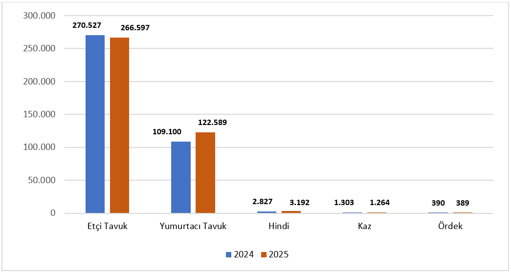 Kümes hayvan varlığı (bin adet), 2024-2025