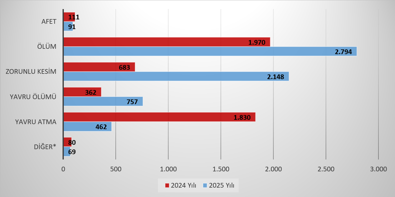 2025 yılında bir önceki yıla göre köy bazlı verim sigortası alanında %47,6, büyükbaş hayvan sayısında %44,6, küçükbaş hayvan sayısında %42,7 oranında bir artış olmuştur.